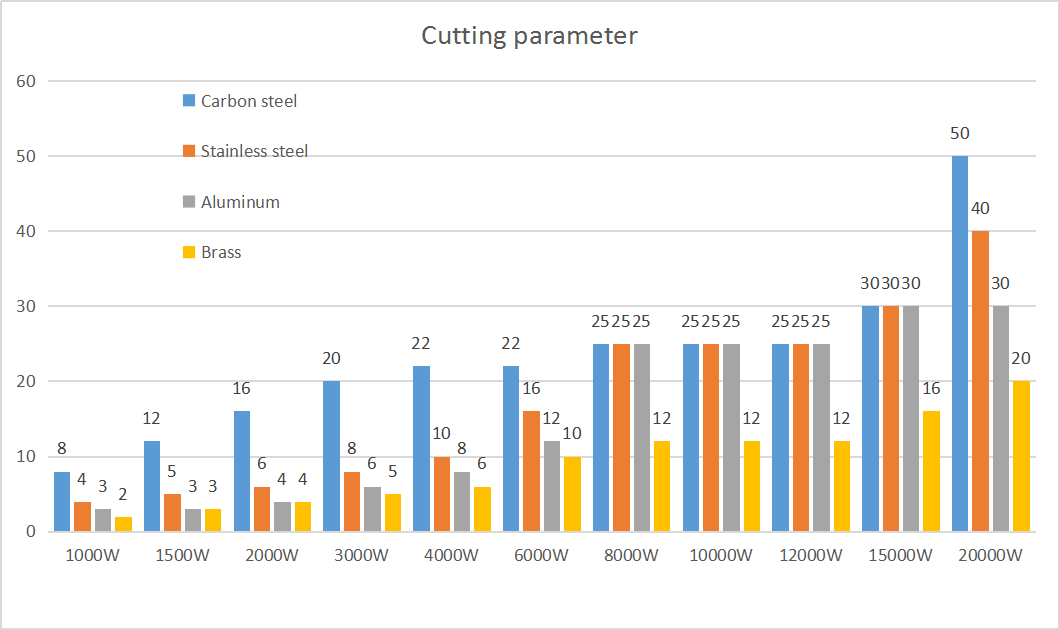 2) Matériaux et épaisseur de coupe : Puissance du générateur laser.