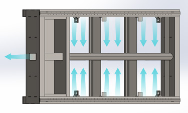 Profitez d'un meilleur environnement de coupe grâce à notre système d'évacuation des fumées et des poussières cloisonné. Chaque orifice d'aspiration s'ouvre et se ferme indépendamment pour évacuer la fumée d'une zone particulière, améliorant considérablement l'efficacité du désenfumage.