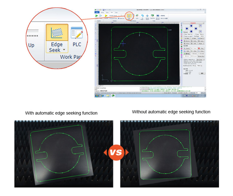 Introduisez automatiquement le bord de coupe des matériaux et ajustez automatiquement la plage de coupe en fonction de leur angle d'inclinaison en cas de position incorrecte.