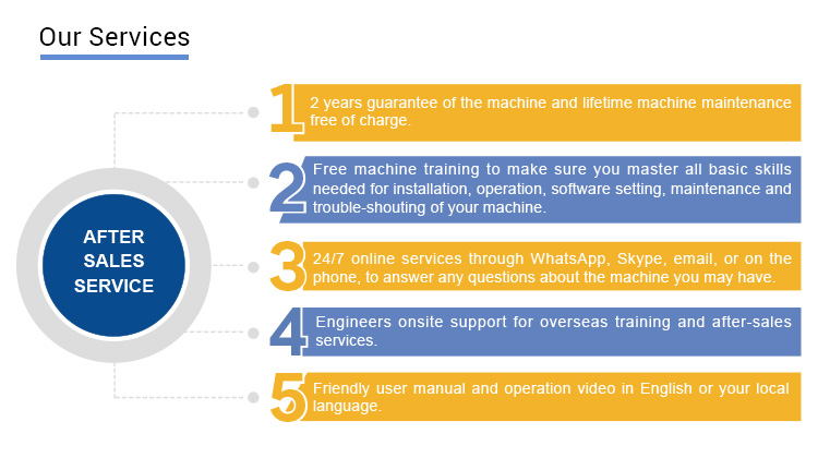 A : Nous fournirons des pièces gratuites pendant la période de garantie de la machine si la machine a des problèmes. Bien que nous fournissions également un service après-vente gratuit à vie. Donc, si vous avez des doutes, faites-le nous savoir, nous vous donnerons des solutions.